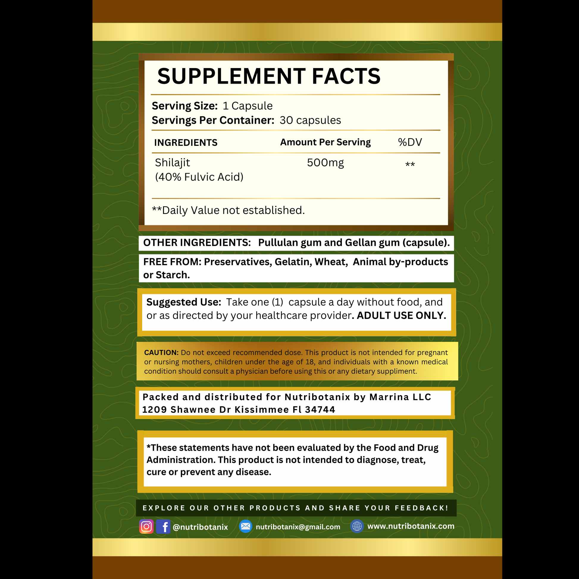 Each capsule contains 100% pure, purified Shilajit — no fillers, additives, or artificial ingredients.