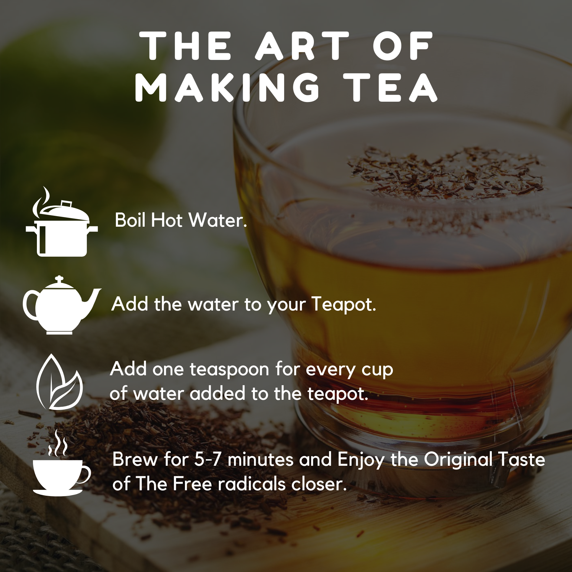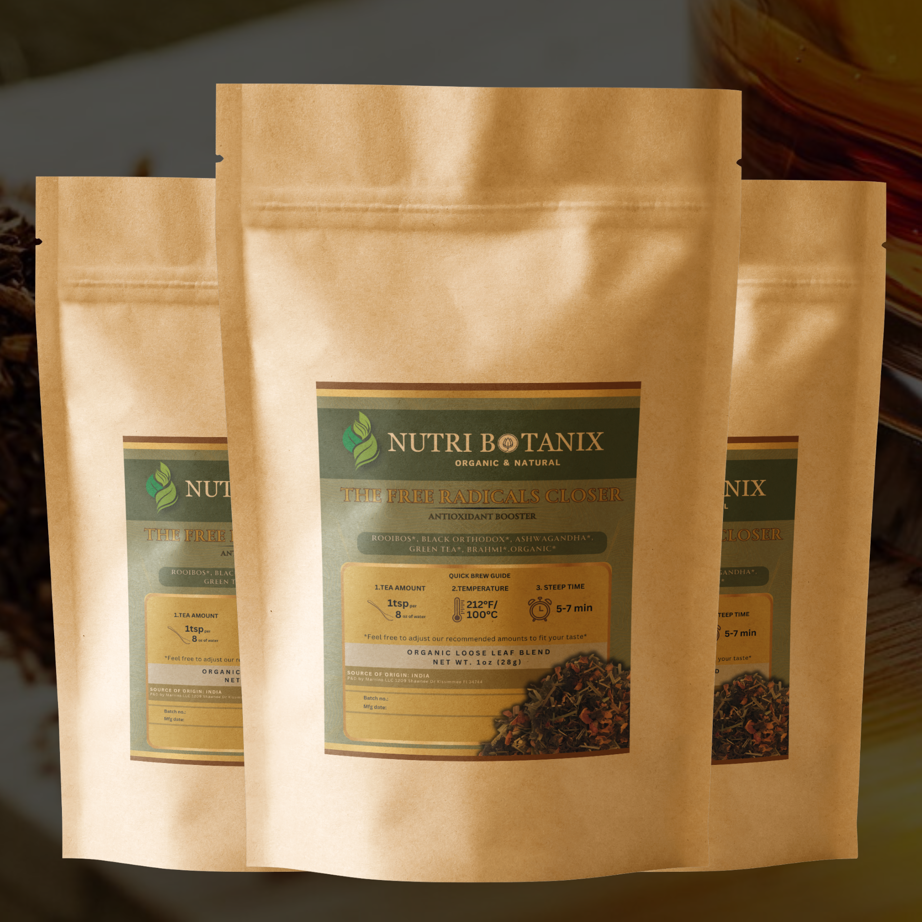 Step into cellular protection with Free Radical Closer, a potent organic herbal tea blend crafted to fight oxidative stress and support total wellness. This powerful infusion of Rooibos, Black Orthodox Tea, Ashwagandha, Green Tea, and Brahmi delivers a rich source of antioxidants, adaptogens, and brain-boosting botanicals to help your body and mind stay sharp, youthful, and resilient.