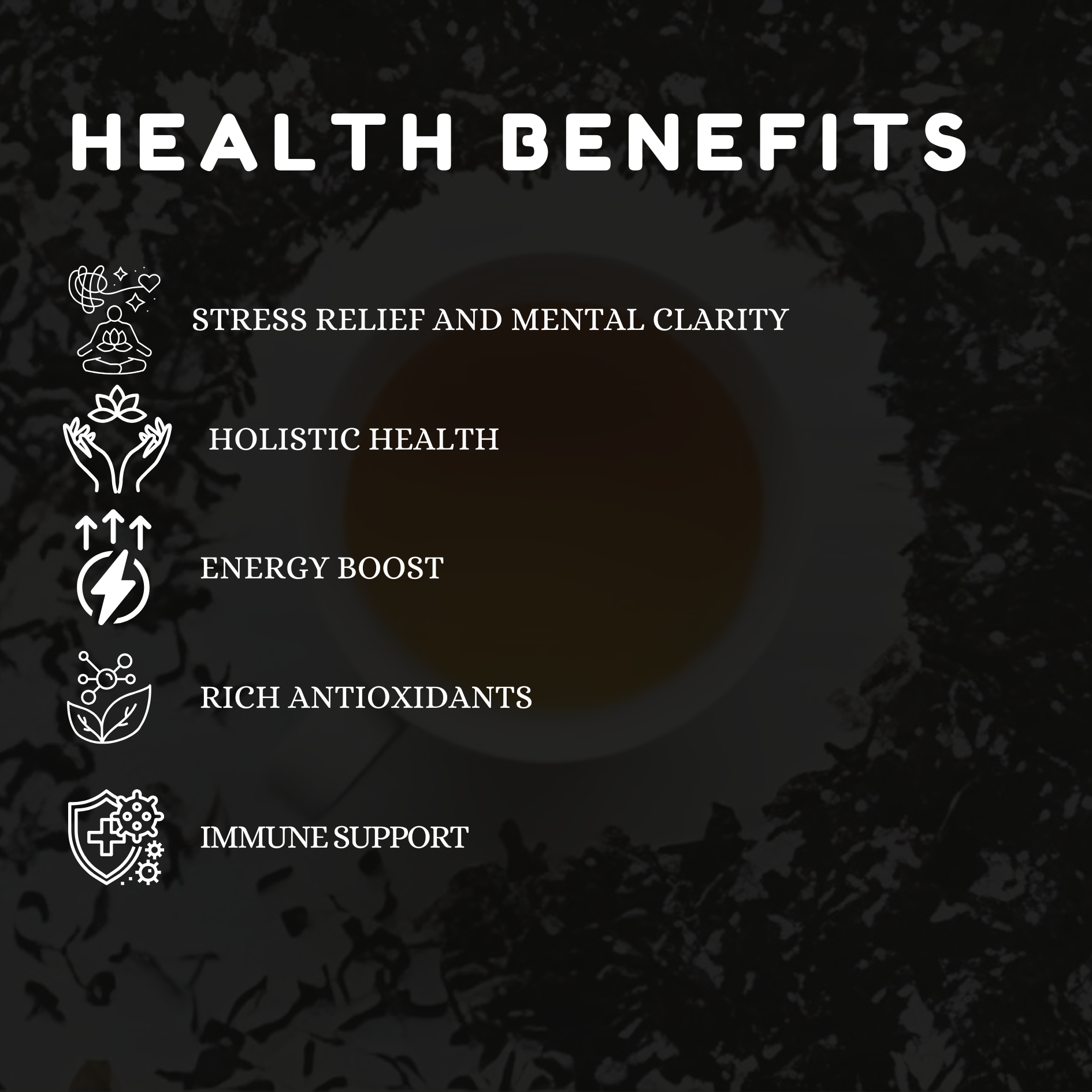 Ashwagandha balances cortisol levels while black orthodox tea gives a gentle caffeine lift. -