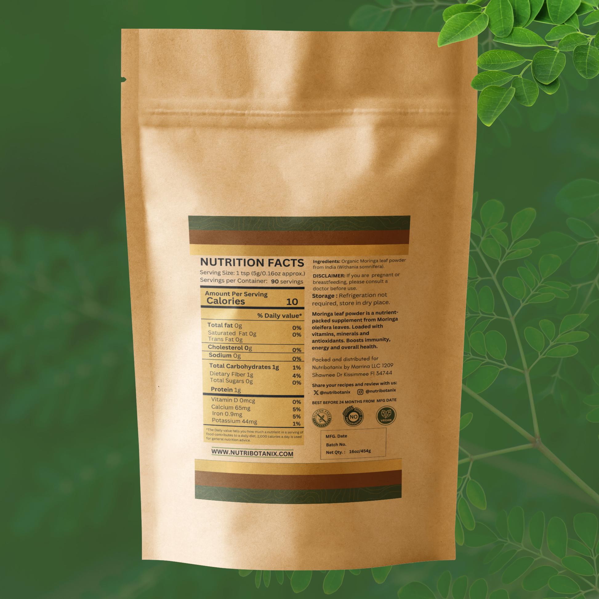Quality Assurance: At Nutribotanix, we are dedicated to delivering excellence. Each batch of our Moringa Leaf Powder undergoes rigorous testing to guarantee the highest quality and consistency. Trust in Nutribotanix to bring you the authentic benefits of moringa with every scoop.